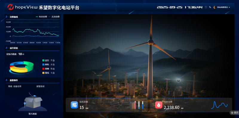 hopeView系統(tǒng)用于風(fēng)場(chǎng)、光伏電站等場(chǎng)景下新能源設(shè)備(變流器、逆變器等)的遠(yuǎn)程監(jiān)控和智能運(yùn)維。可展示設(shè)備實(shí)時(shí)監(jiān)控?cái)?shù)據(jù),上報(bào)故障告警、事件記錄、故障錄波等運(yùn)維診斷信息,并提供多維數(shù)據(jù)報(bào)表統(tǒng)計(jì)、智能故障診斷與預(yù)測(cè)、數(shù)據(jù)轉(zhuǎn)發(fā)等增值服務(wù)。
